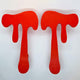 The size of the bloody drawer pull is approximately 5 x 2.75 x 1.15 inches (127x70x29.1mm) and comes with a set of 8-32x3/4 and 8-32x1 inch zinc machine screws for cabinets or drawers from 0.4 up to 0.78 inches thick. Layer by layer this pull is 3D printed using PLA (polylactic acid) which is a biodegradable and bioactive thermoplastic aliphatic polyester derived from renewable resources, such as corn starch.