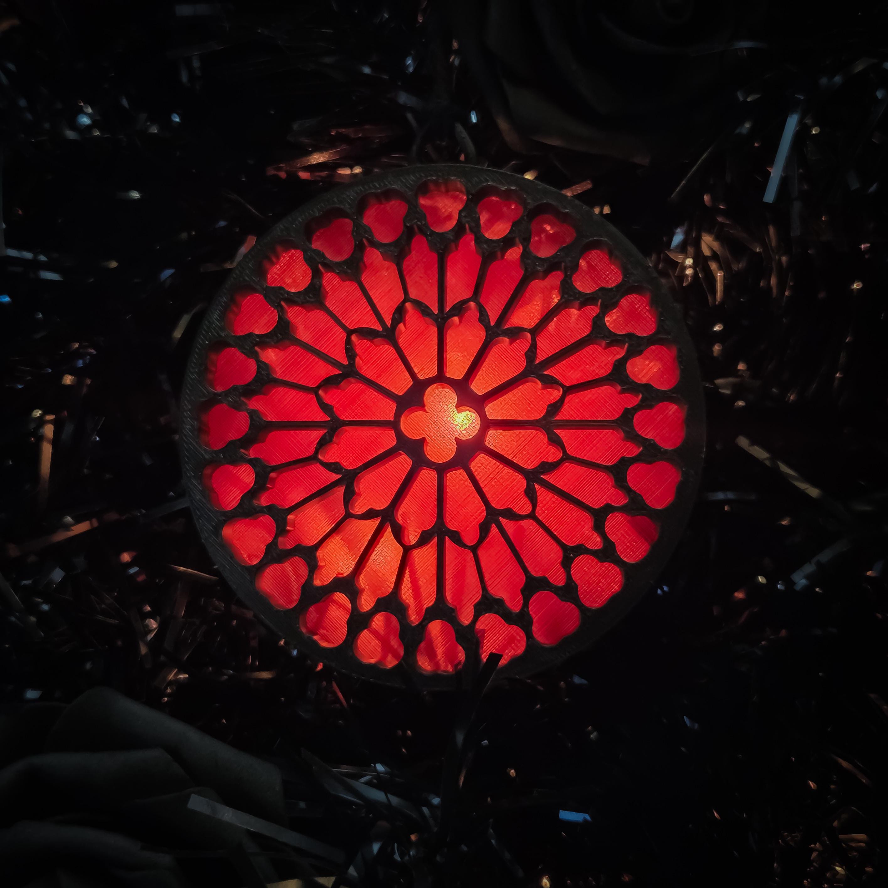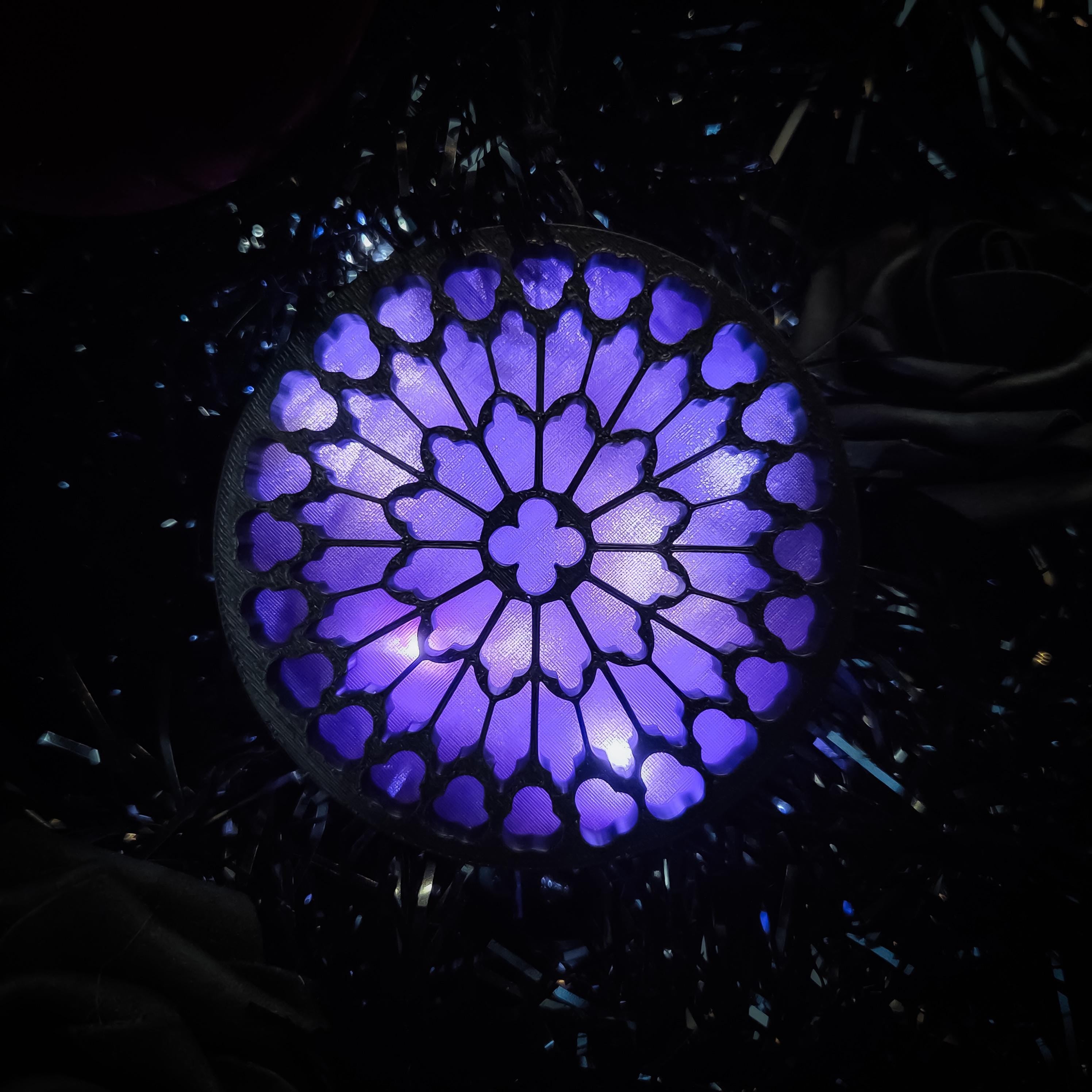 Burgos Rose Window Stained Glass Tree Ornament • Gothic Holiday Home Decor • 3D Printed