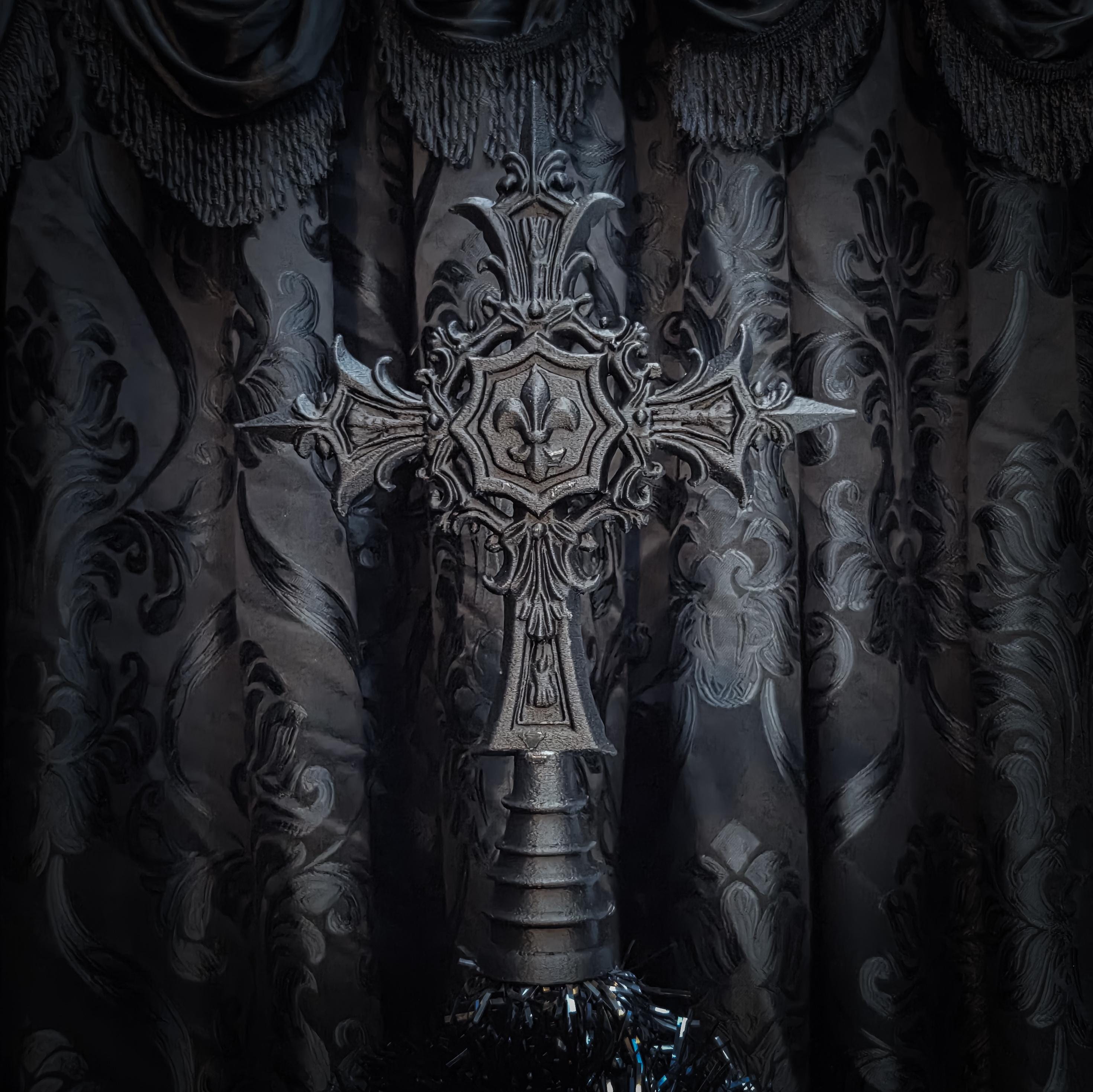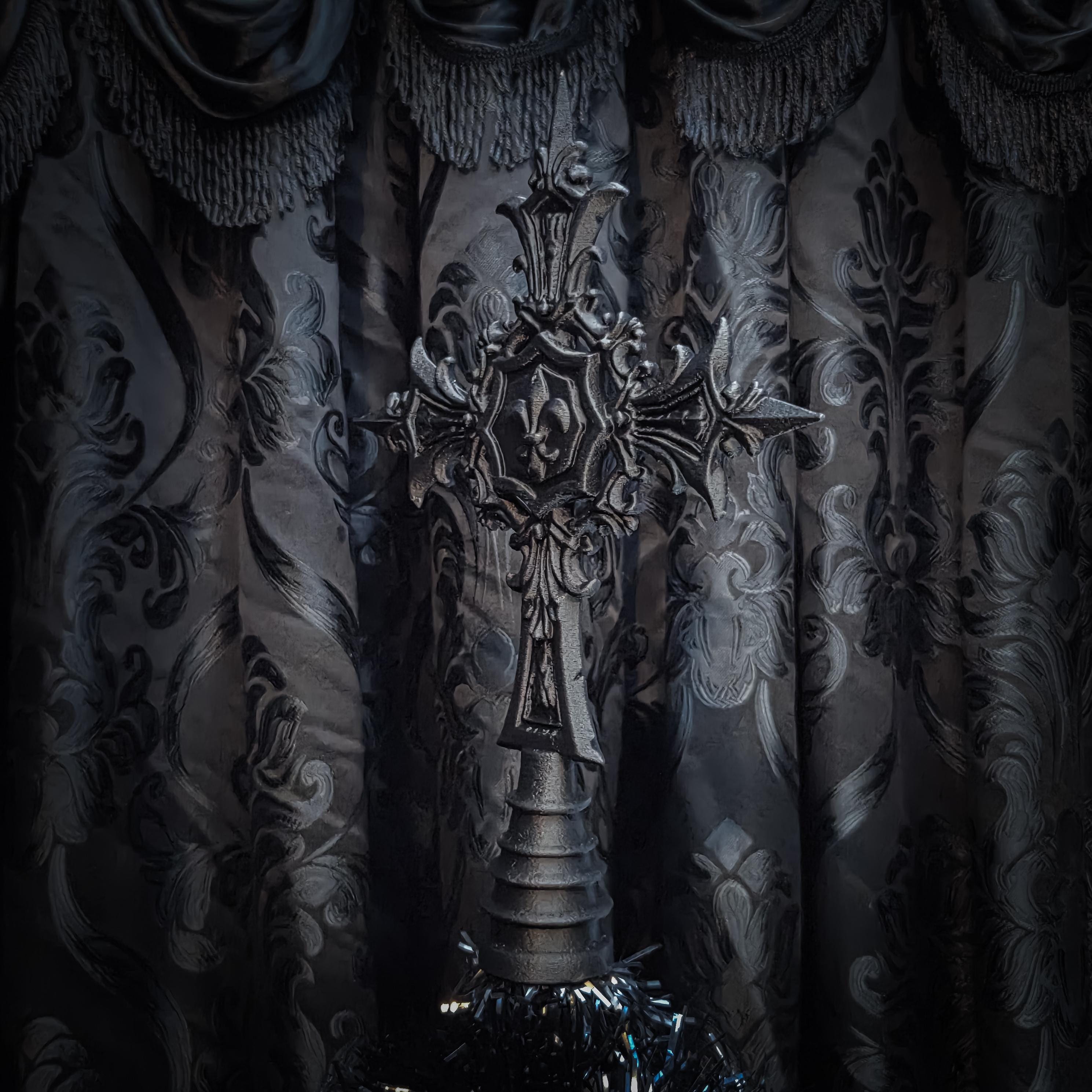 Iron Gothic Cross Tree Topper • Gothic Holiday Home Decor • 3D Printed