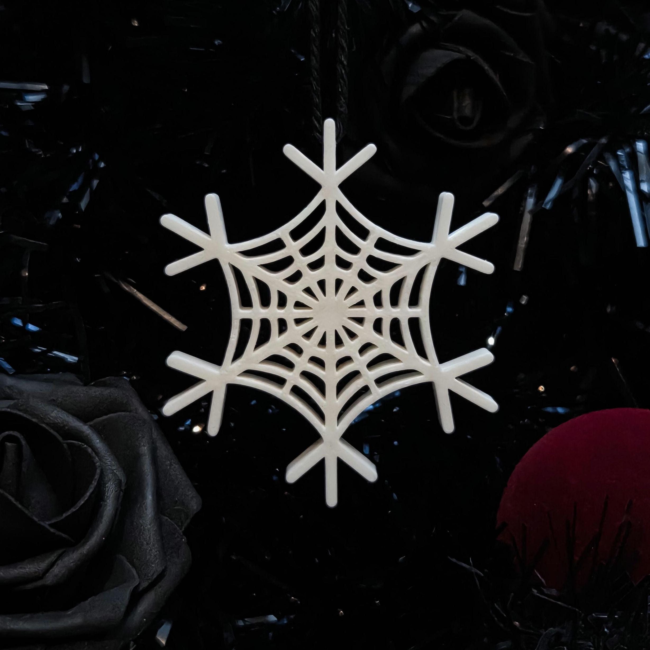 Spiderweb Snowflake Tree Ornament • Gothic Holiday Home Decor • 3D Printed