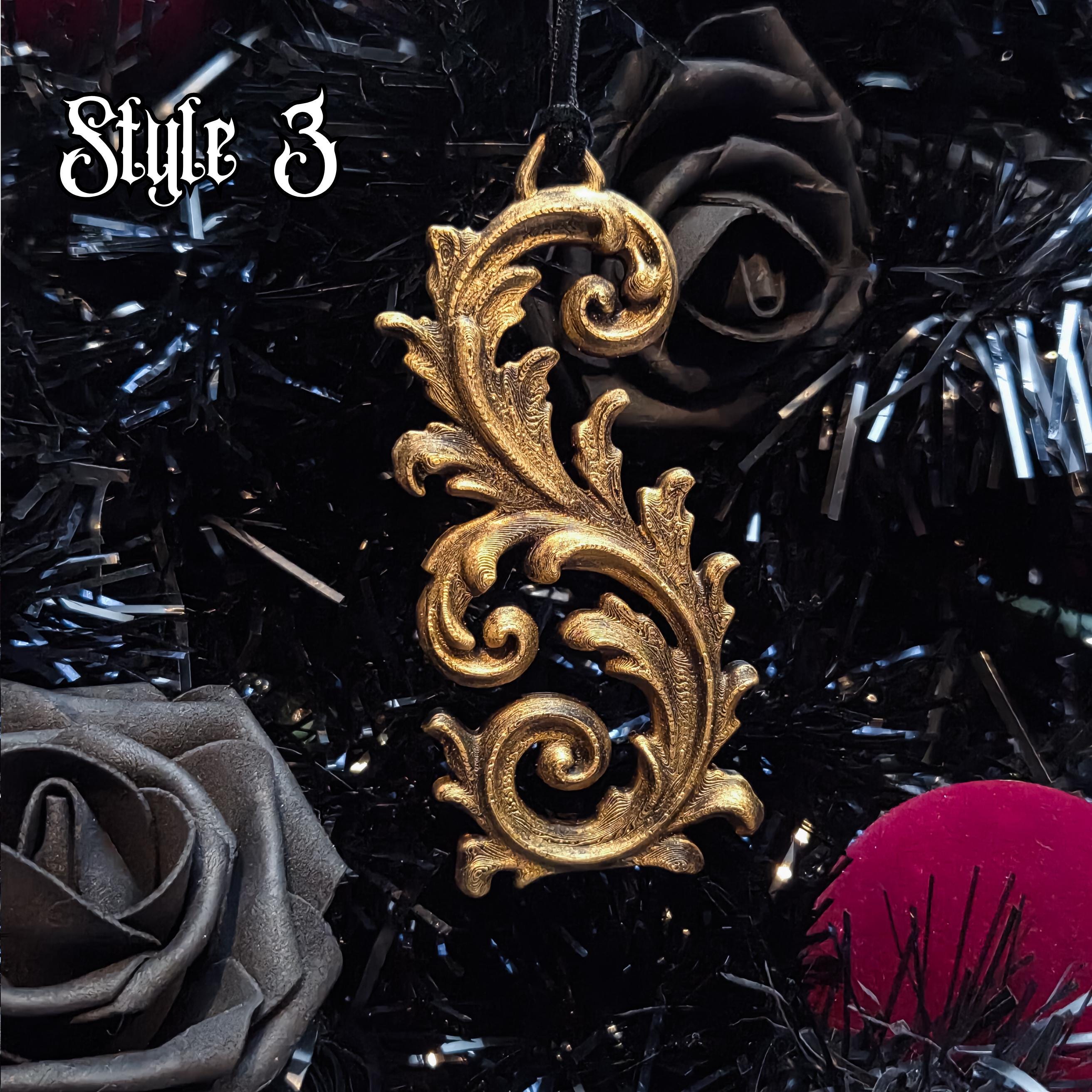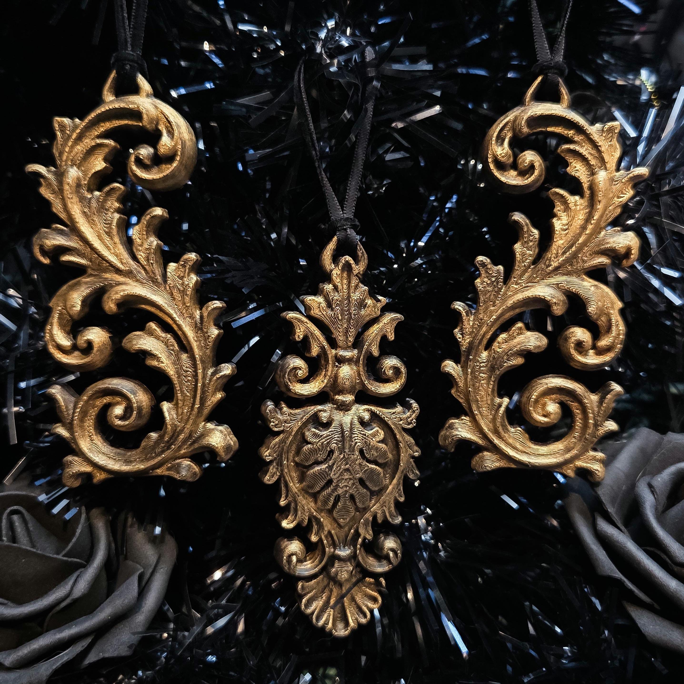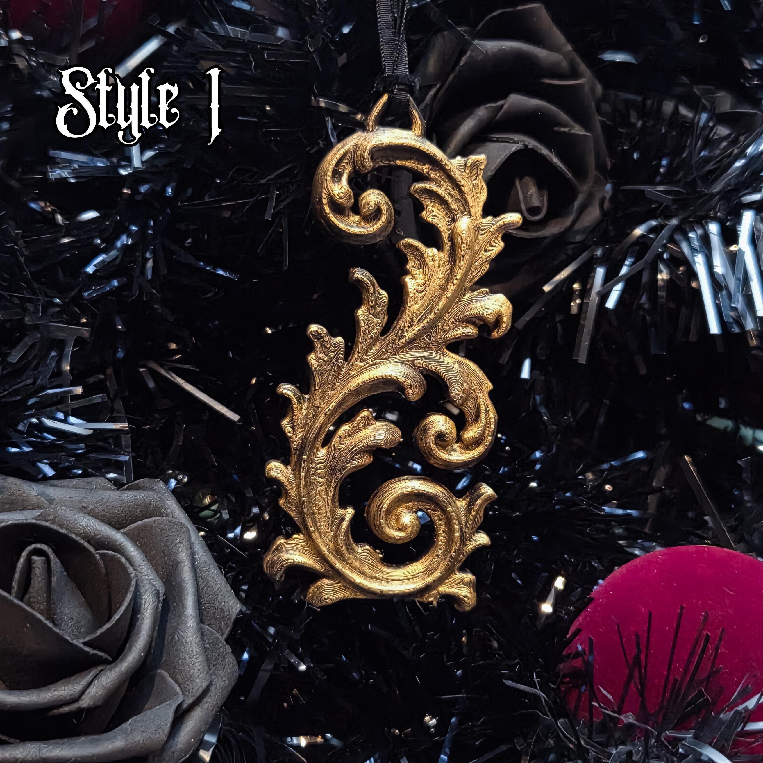 Add a touch of classic Victorian charm to your holiday decor with these filigree ornaments. Inspired by traditional 19th-century patterns, each piece captures the graceful curves that once adorned parlours, jewellery, and keepsakes of the era. The filigree is hand-painted in your choice of antiqued silver, gold, or pewter, giving the ornament a subtle aged finish, the kind that feels perfectly at home on a Christmas tree or resting among your favourite gothic treasures. Finished with a black velvet ribbon, it’s a simple yet striking accent for anyone who appreciates timeless design with a slightly darker edge.