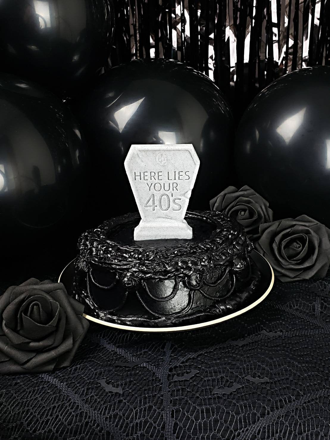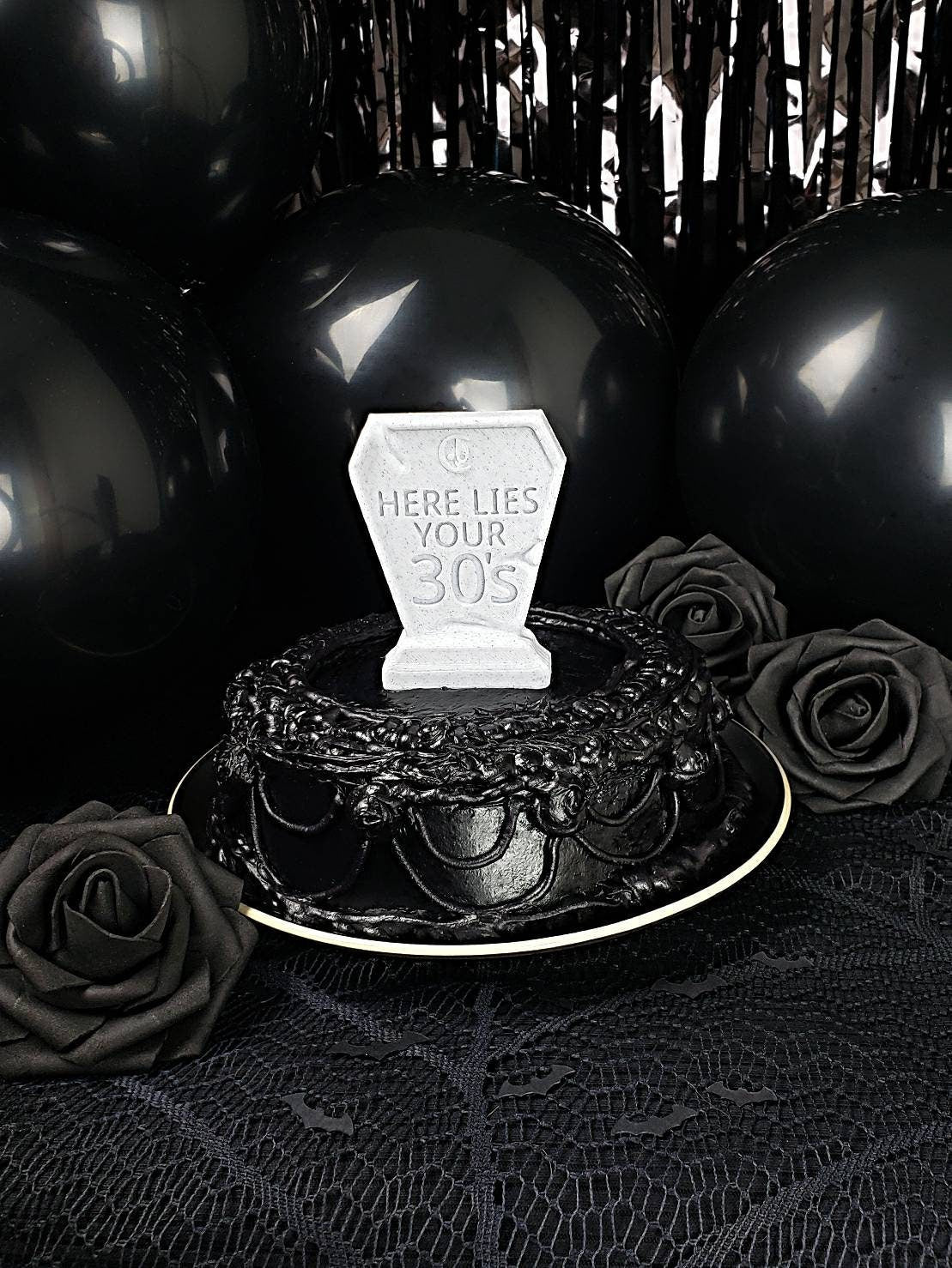 Mourning the passing of your youth. This tombstone is a perfect gift for anyone passing over from one decade to another, or for your own mourning cake.
