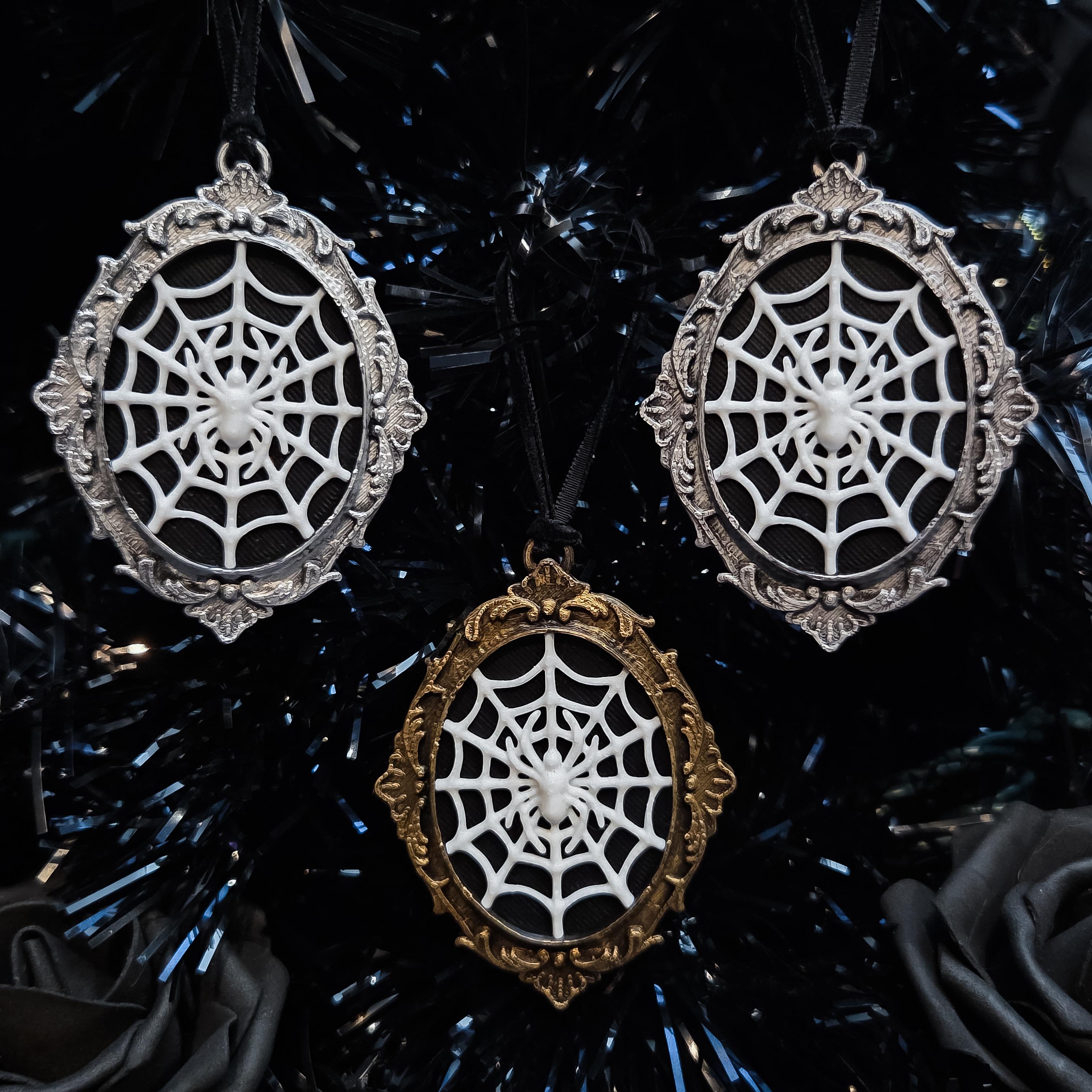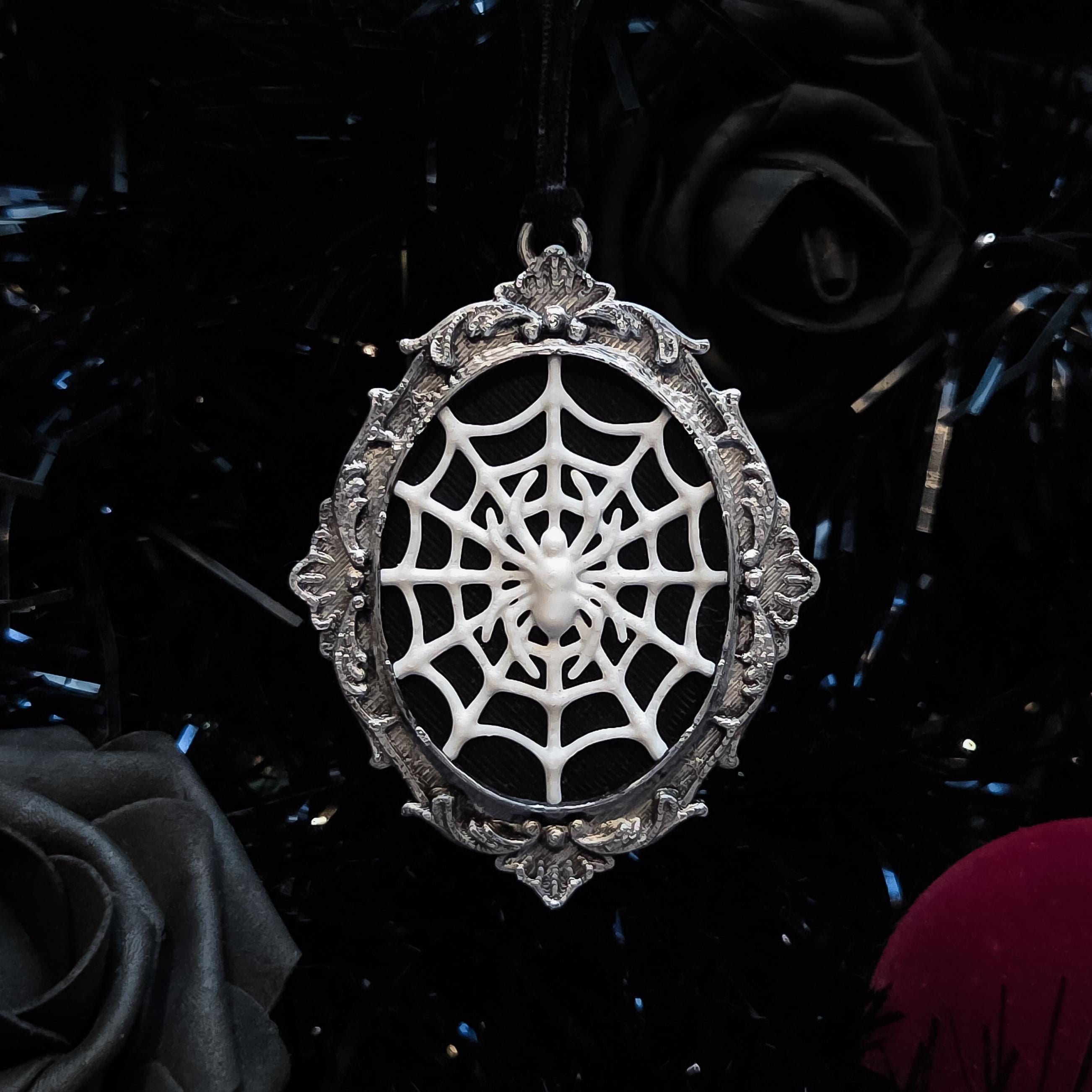 Spiderweb Cameo Antiqued Tree Ornament • Gothic Holiday Home Decor • 3D Printed