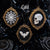 Add a touch of Victorian elegance to your holiday decor with this classic cameo-style ornament, inspired by 19th-century pendants and brooches. Whether worn close to the heart or displayed proudly in the parlour, cameos were treasured keepsakes meant to be admired, cherished, and occasionally shown off to impress the neighbours. This ornament captures that same spirit, featuring a spider with spiderweb cameo framed in Victorian filigree. The frame is hand-painted in your choice of silver, gold, or pewter, giving each piece a weathered, antiqued, heirloom finish -- as if it survived generations tucked away in a lace-lined jewellery box. Hang it on your tree, present it as a gothic keepsake, or display it year-round as a small reminder that elegance and eeriness pair wonderfully, especially during Christmas Mourning.